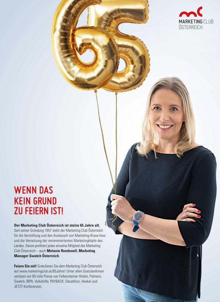 Top-Marketer gratulierten dem Marketing Club Österreich ein Jahr lang via Print, Out of Home und Online zum 65er