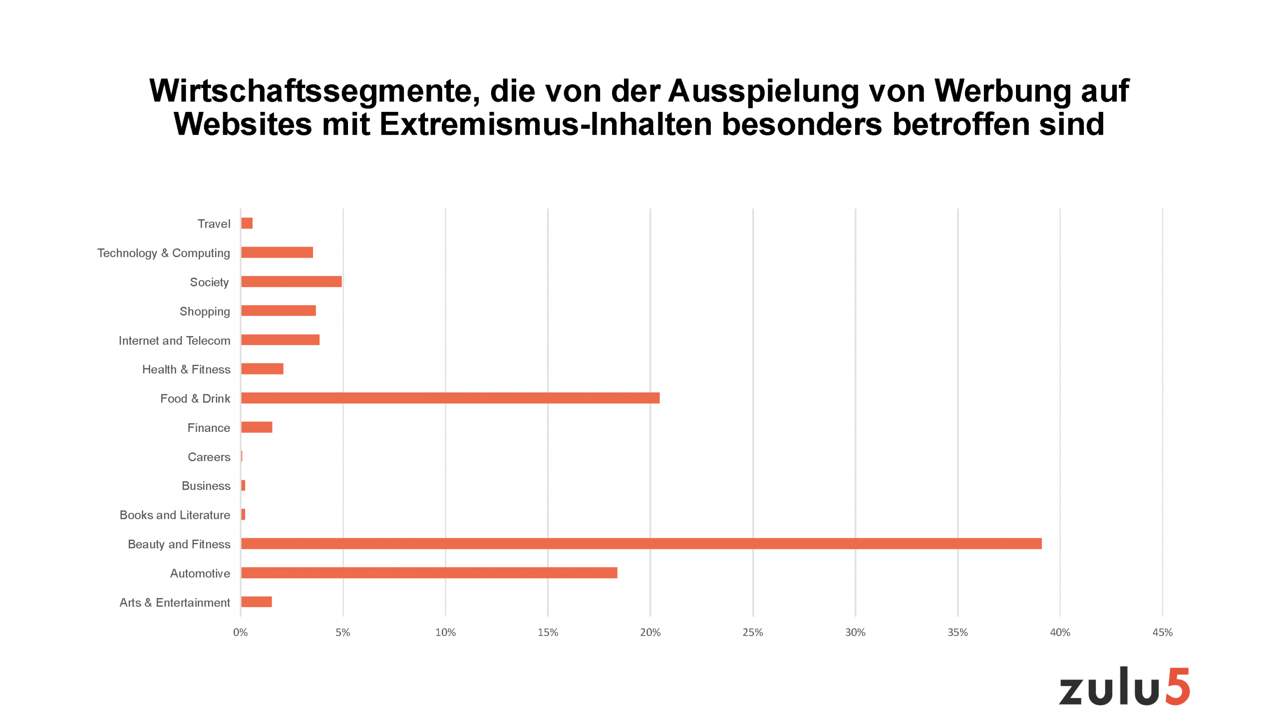 Im Rahmen der Untersuchung für das Jahr 2019 hat zulu5 erhoben, welche heimischen Wirtschaftssegmente von der Ausspielung von Werbung auf Websites mit grenzwertigem Content besonders betroffen sind: nämlich die Autoindustrie und immer öfter auch die Beauty/Kosmetik- und die Nahrungsmittelindustrie.